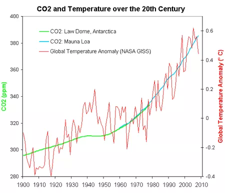 Klimawissenschaftlicher Konsens ist, dass der anthropogene Treibhauseffekt hauptsächlich verantwortlich für den stark beschleunigten Klimawandel ist. Insbesondere die seit Beginn der Industrialisierung emittierten Treibhausgase haben einen immensen Einfluss auf den rasanten Anstieg der globalen Durchschnittstemperatur gehabt. Die CO2 Konzentration in der Erdatmosphäre hat sich als Indikator für die weltweite Erderwärmung etabliert. Die Korrelation von CO2 Konzentration und der Erddurchschnittstemperaturen auf der Erde wird in folgender Grafik verdeutlicht. In den Jahren, in denen der korrelationale Zusammenhang weniger auffällt, überdeckte ein veränderter Aerosolgehalt den CO2-Effekt.